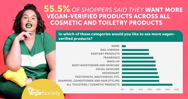 Prieskum ako súčasť správy zistil, že väčšina zákazníkov nakupujúcich kozmetiku (56%) chce vo všetkých kozmetických a toaletných výrobkoch viac vegánsky overených výrobkov, zatiaľ čo 41% uviedlo, že by radi videli viac vegánskych šampónov, kondicionérov a produktov na úpravu vlasov.