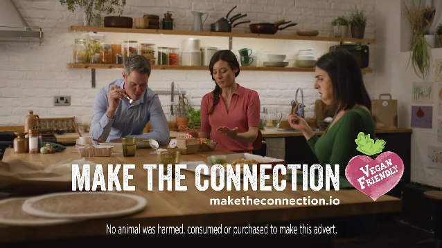 "Všetci herci sú vegáni a svoju prácu robili so zľavou, aby pomohli veci," poznamenal Bursnall. "Samozrejme, že sme použili iba vegánske jedlo!" Reklama končí tým, že traja ľudia znechutene pozerajú na svoje jedlo, keď začínajú nadväzovať spojenie.